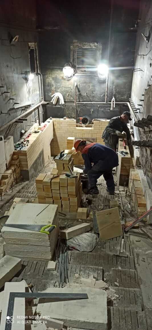 На смену ей была смонтирована новая обмуровка с использованием передовых технологий и высококачественных огнеупорных материалов. Важно отметить, что все материалы были предоставлены заказчиком. Этот аспект демонстрирует не только гибкость нашего подхода, но и высокий уровень доверия и эффективного взаимодействия между нашими компаниями, позволяя достичь результата, полностью соответствующего ожиданиям партнера.